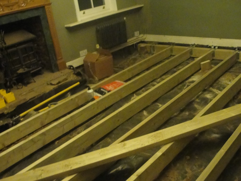 Our living room floor was a mess when we moved in. It’s a project that’s been waiting its time behind all the others – the leaky roof, the flaky render, the bowed studding, the drunken sailor of a fenceline, the complete lack of flues and chimney pots in the chimneys and the windows that were so rotted we could squeeze water out of the woodwork. This year, it’s the most urgent job, and it is close to being finished.