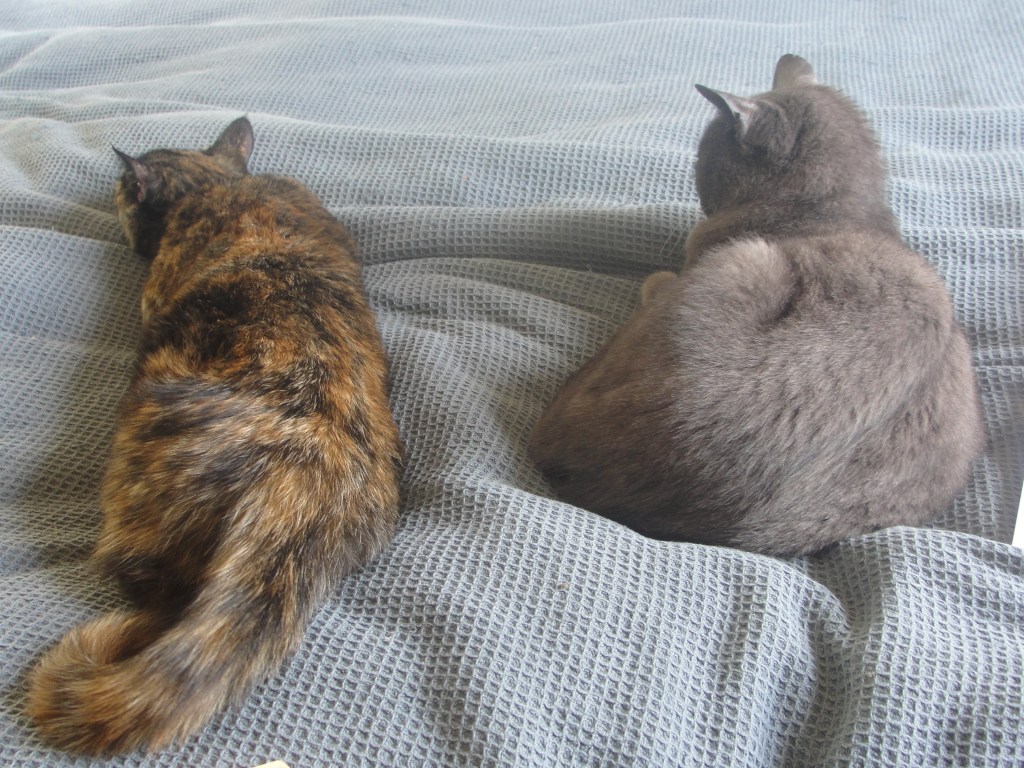 So all that greets us on our return home now are the two elderly cats. Their affection is enough, but I still hope there’ll be other cats in our future, and I hope one will be a sparky tortie like Genie.