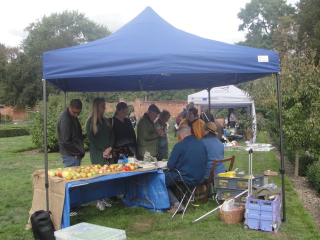 On the third day, we took that big box full of apples to the Apple Day at Great Easton Lodge near Dunmow and collared the experts. We had warned them, but as we walked across the lawn with 115 apples in a box at two minutes before opening time, we did feel a little guilty. We waited until they arrived and said sheepishly… ‘Hope this is okay?’