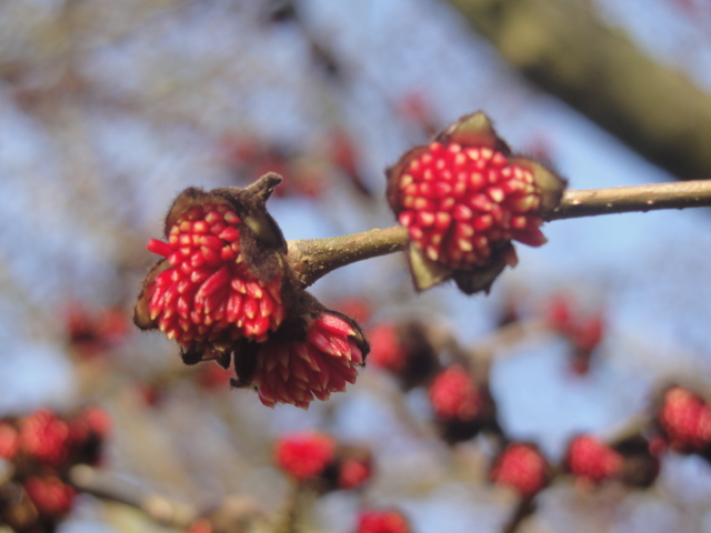 Right now, it’s blowing hard and cold and gusty outside (and inside, must check where it’s getting in) and I’m staying right here. The moment I get back out, I’ll be checking to see whether the beech has come out in those amazing red flowers again, or whether it is hiding from the weather like I am.