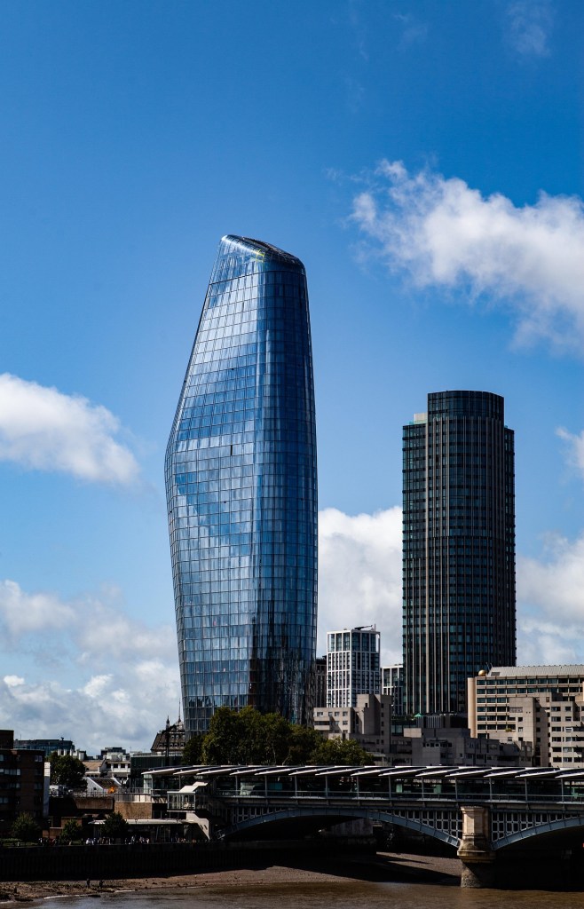 Last year I had a room on the first floor overlooking the waste ground behind the hotel. It gave me a view of what was behind a tall wooden fence – the rough ground and weeds and wildlife of a site ready to be built on. This year, I was given a room on the third floor, and on the side facing the Thames. Not that I got a view of the Thames. I was looking directly at One Blackfriars, the curvy glass tower that is on the same scale as the Gherkin and the Shard – after planning objections cut its height by a hundred metres or so. As with all residential developments, it came with a side-order of ‘affordable homes’ – in this case, in a separate concrete building on a nearby street, thereby dividing its inhabitants from the gorgeous views and smart facilities enjoyed by residents of One Blackfriars itself. I couldn’t see the topmost towers without putting my face to the glass of the window and really craning my head. It was spooky from evening onwards, and I couldn’t help but think of the Twin Towers every time I saw it. Lovely for its rich inhabitants, but a crap neighbour.